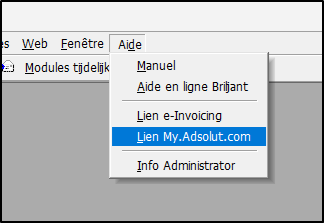 Dans la barre de menu, sélectionnez Aide puis Lien My.Adsolut.com.