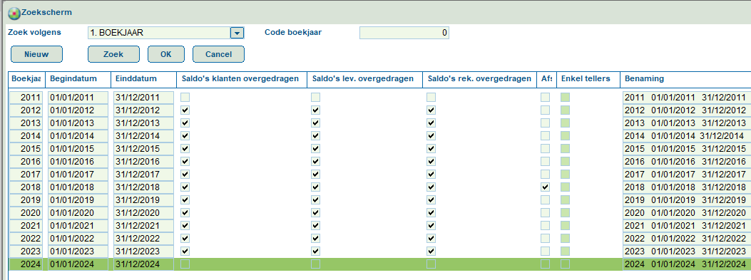 Geef in het veld Boekjaar het aangemaakte boekjaar in en bewaar de aanpassingen met F5.