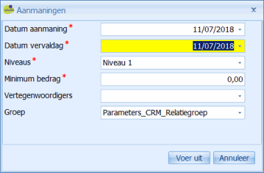 Datum aanmaning: de datum die in de aanmaningsbrief zal gebruikt worden.