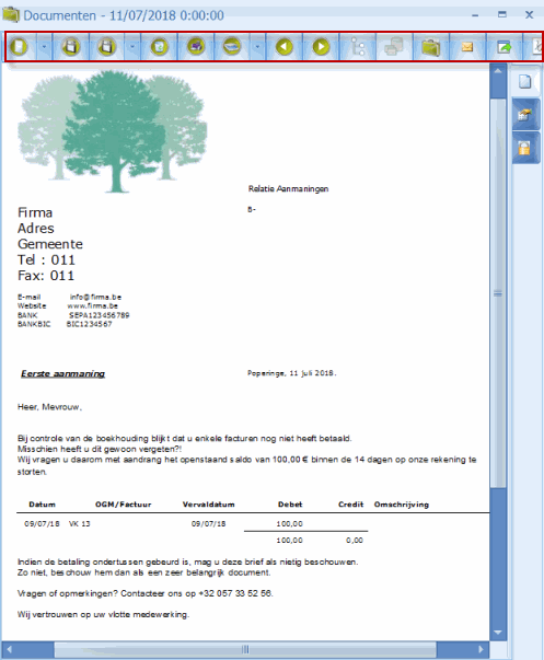 # Doc om het afdrukvoorbeeld van de maning te bekijken. Via de icoontjes bovenaan kan u de maning opnieuw mailen, afdrukken, …