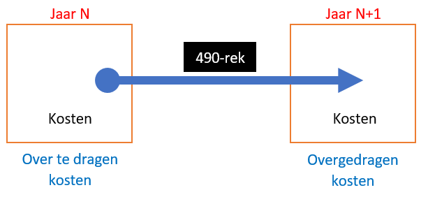 Kosten die zijn geboekt tijdens het boekjaar, maar die geheel of gedeeltelijk worden aangerekend op een later boekjaar. (pro rata verdelen tussen de 2 boekjaren)