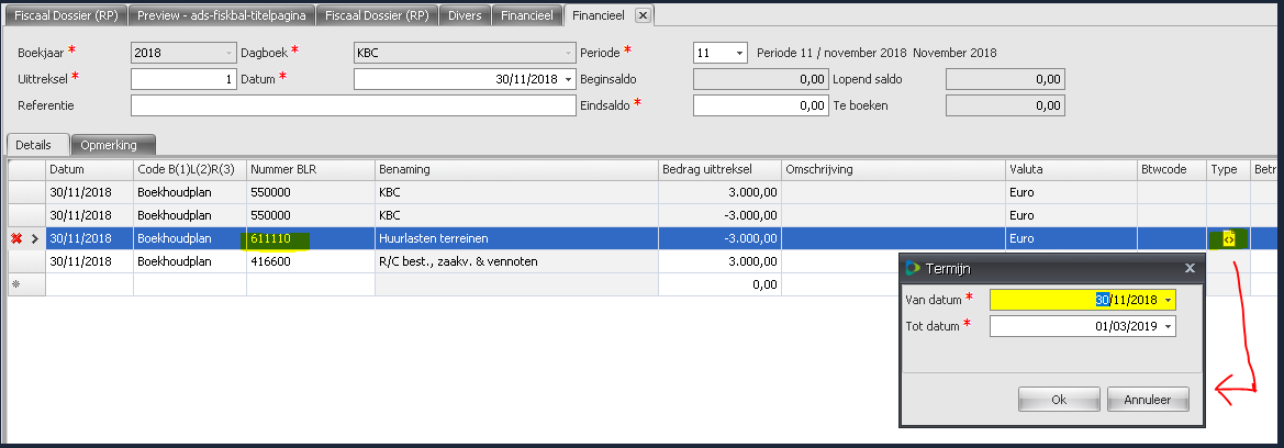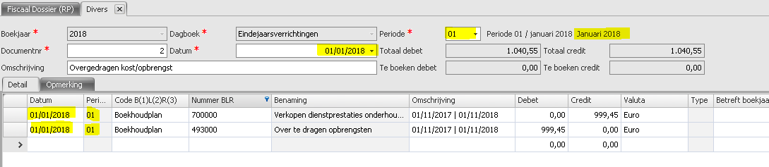 - datum boeking : de eerste dag van het boekjaar wordt gebruikt