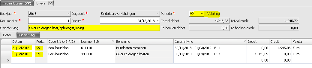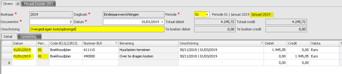 - datum boeking : de laatste dag van het boekjaar wordt gebruikt