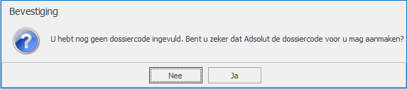 - Het programma geeft de volgende melding als u nog geen Code voor de nieuwe relatie / natuurlijke persoon heeft ingegeven