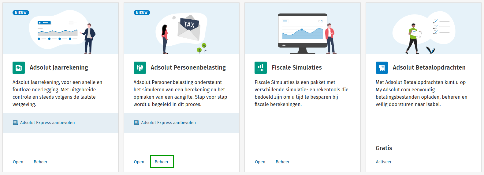 - Op de tegel van Adsolut Personenbelasting klik je op Beheer