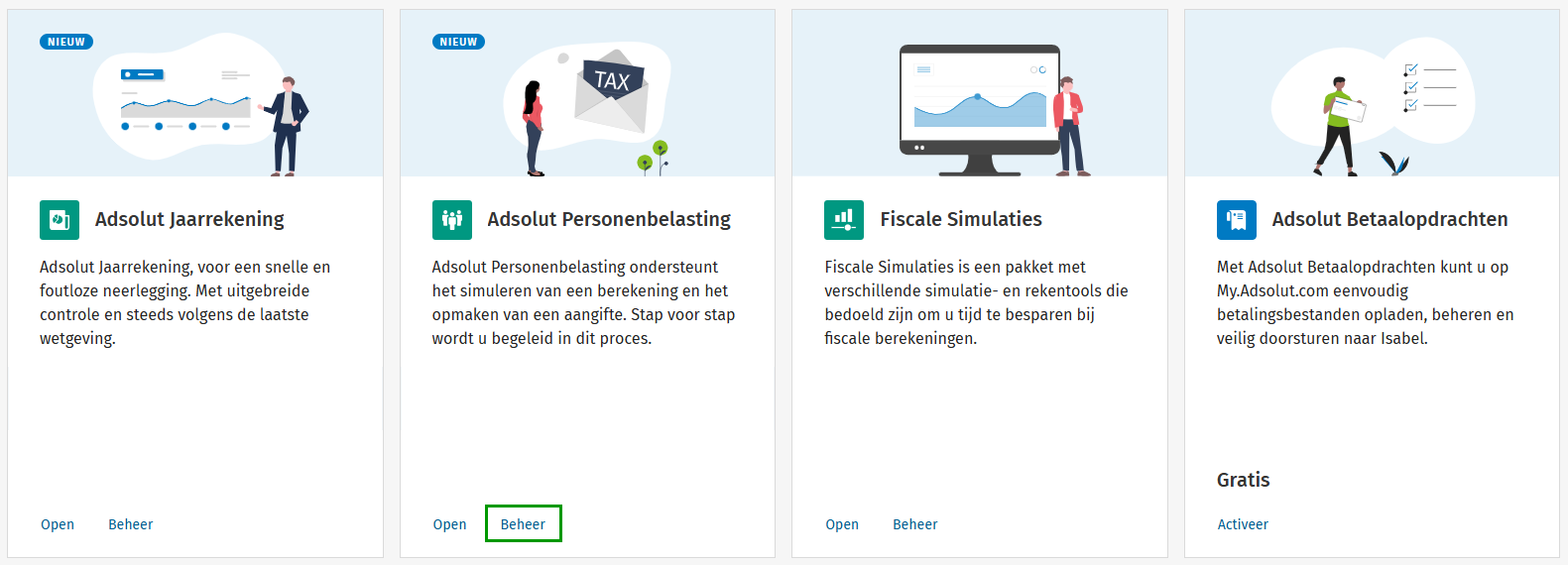 Met Adsolut Personenbelasting kies je voor een vlotte en optimale aangifte. Je gaat van start in slechts vier stappen. Via de procedure hieronder kun je een medewerker van het kantoor toegang geven tot het programma.