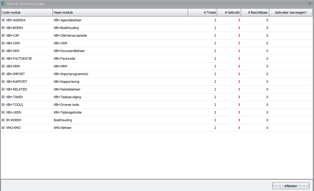 Als de Update Wizard meldt dat er voor een bepaalde module(s) meer gebruikers zijn dan toegelaten in de licentie, dan kun je de update van Adsolut niet uitvoeren. Om dit op te lossen verwijder je gebruiker(s) op de module(s) die een probleem geven.