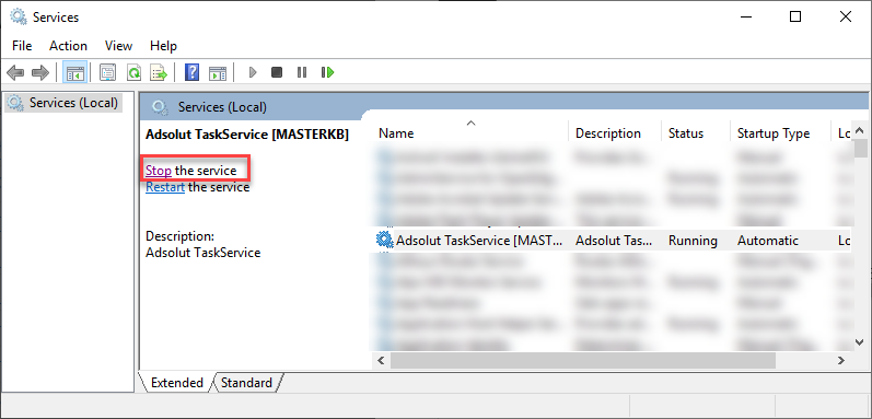 - Klik met de linkermuisknop op de service "Adsolut TaskService [MASTERKB]".