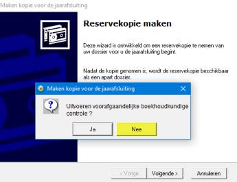 Klik deze maal op Nee. De boekhoudkundige controles werden reeds uitgevoerd (zie hierboven). U hoeft deze geen 2de keer uit te voeren.