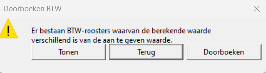 - Doorboeken: Het doorboeken van de btw wordt alsnog uitgevoerd.