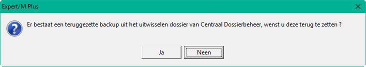 TipAls u Expert/M gegevens heeft ingelezen, zal bij het openen van Expert/M onderstaande vraag worden gesteld, klik op
