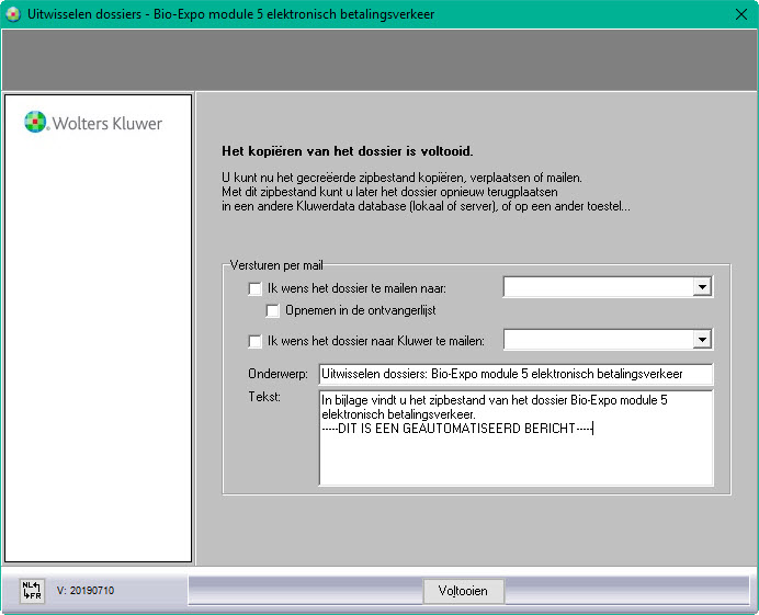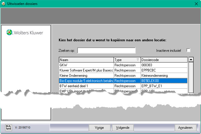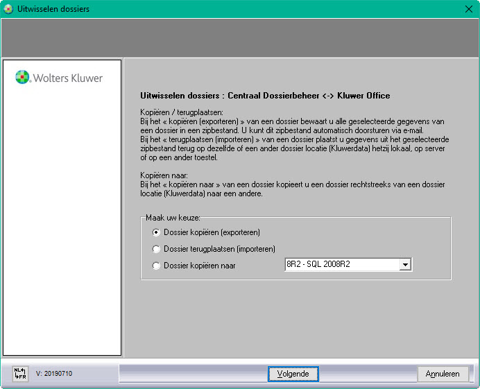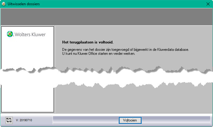 - Het dossier mag in geen enkel programma van Kluwer geopend zijn (alle programma's van Kluwer, ook het Centraal dossierbeheer van dit dossier moet afgesloten zijn).