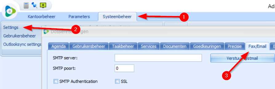1.2 Navigeer naar Systeembeheer > Settings > Fax/Email