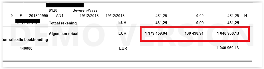Wanneer u in het Excel-bestand de som maakt van de bedragen vermeld onder de kolommen "Bedrag x D/C", "Betaald" en "Saldo" dan moeten deze sommen overeen komen met de bedragen vermeld op de laatste pagina van de pdf-versie van de OP-lijst.