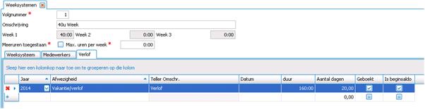 Klik dan op "boek beginsaldi" zodat alle medewerkers die gelinkt zijn aan het weeksysteem deze aantal toegewezen krijgen (het veld "geboekt" wordt dan aangevinkt)