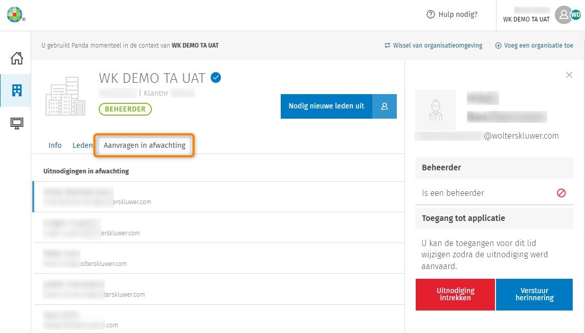Aanvragen in afwachting vindt u de namen terug van gebruikers die uitgenodigd zijn maar nog niet geaccepteerd hebben door een account te creëren.