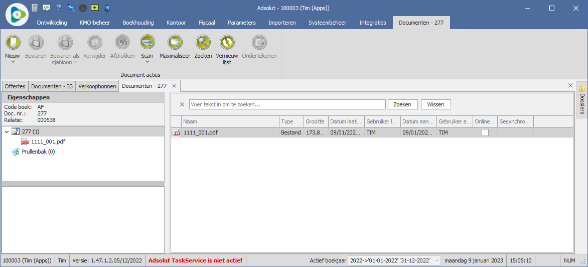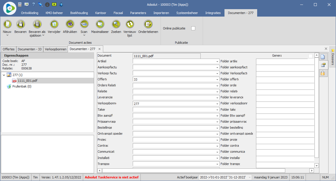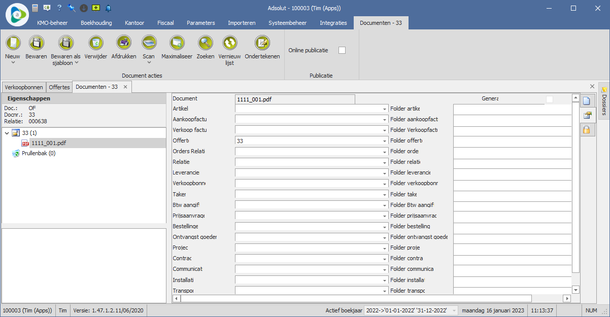Offerte 33 heeft een gekoppeld document ‘111_001.pdf’: