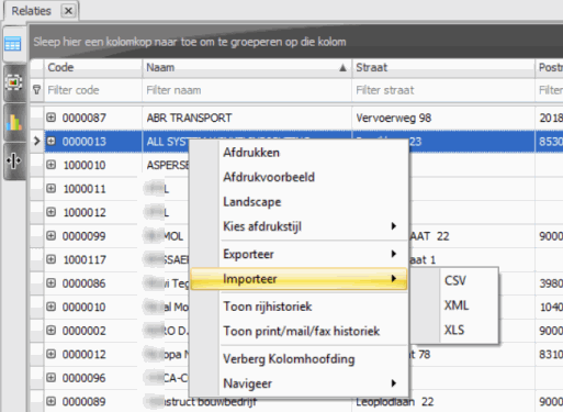 - Klik met de rechtermuisknop op een rij en klik op Importeer.