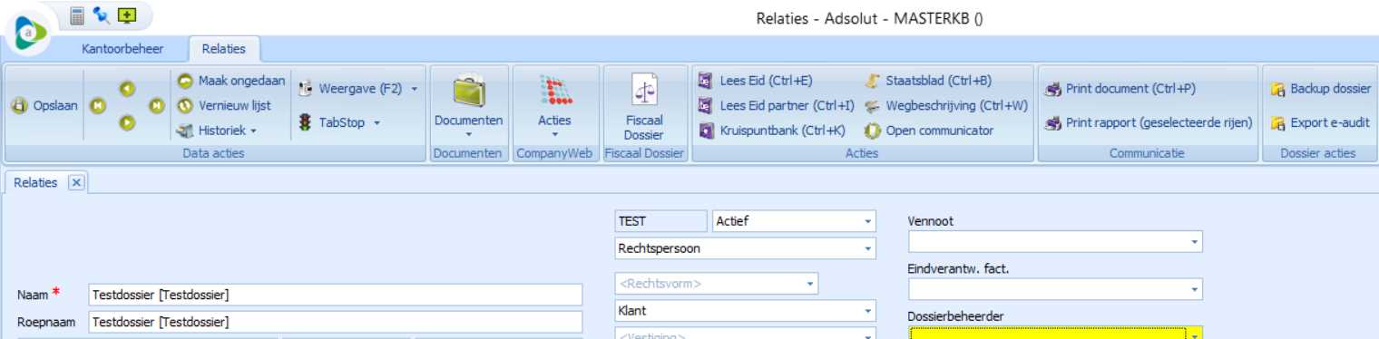 12. Wanneer u het backup-bestand bezorgt aan een andere Adsolut-gebruiker, kan deze het bestand restoren in Adsolut om een kopie van uw dossier te gebruiken.