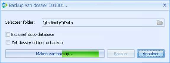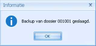 Let op: Verander de naam van het backupbestand NIET! Als u de naam wijzigt, dan kan de ontvanger het dossier niet restoren.