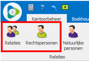 Stap 1 : klik in Kantoorbeheer in de module "Relaties" op een van de volgende knoppen: