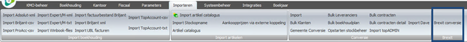 Op 1 januari 2021, loopt de overgangsperiode af en zal het Verenigd Koninkrijk de Europese Unie definitief verlaten hebben. Dat betekent o.a. dat het Verenigd Koninkrijk niet langer de EU BTW regelgeving zal volgen en dat transacties met het Verenigd Koninkrijk niet langer als intracommunautaire verrichtingen beschouwd zullen worden maar als import/export zullen beschouwd worden. Omdat u niet manueel alle relaties en leveranciers uit het Verenigd Koninkrijk zou moeten omzetten, werd hiervoor een hulpprogramma voorzien. Via het hulpprogramma zullen alle relaties en leveranciers uit het Verenigd Koninkrijk met een BTW regime ‘Intracommunautair’ omgezet worden naar het BTW regime ‘Buiten EEG’.