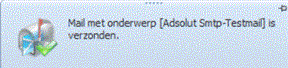 Roep nu opnieuw dit scherm op en druk op verstuur testmail. Doet dit zowel in het Masterkb als in het subdossier. U moet volgend bericht krijgen, zowel in het Masterkb als in het subdossier: Mail met onderwerp [Adsolut Smtp-Testmail] is verzonden.