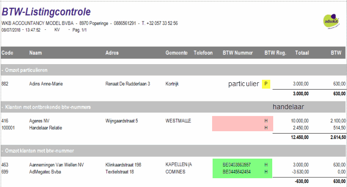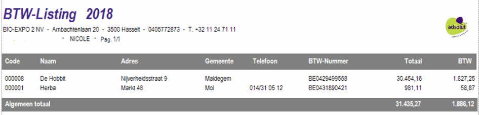 - Op de listing worden de totalen van relaties met hetzelfde ondernemingsnummer samengeteld.