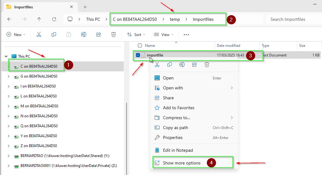 Bij het importeren van bestanden (facturen, CODA, dossiers) vanuit uw online applicatie, kunt u bestanden rechtstreeks ophalen van uw lokale C:-schijf. Echter, bij grote bestanden of een grote hoeveelheid kleine bestanden is het sneller en efficiënter om deze eerst naar een online locatie te kopiëren en daarna te importeren.