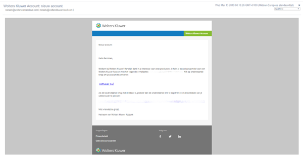 Als u het registratieformulier ingevuld hebt om een account te maken, ontvangt u een activatiemail. Klik de link in deze e-mail aan om de activatie van uw account te finaliseren.
