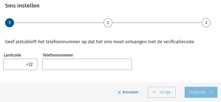 Wanneer je een gsm-nummer invult, ontvang je een sms met een veiligheidscode. Door de veiligheidscode in te vullen, finaliseer je de activatie.