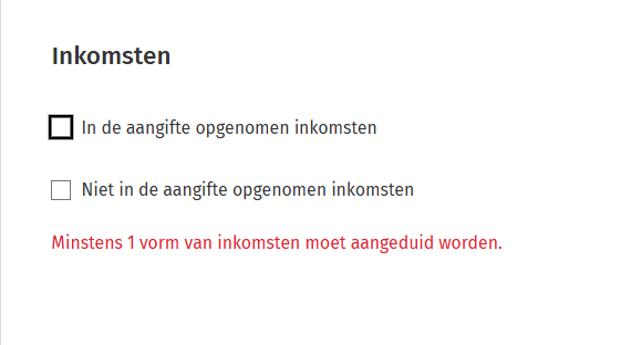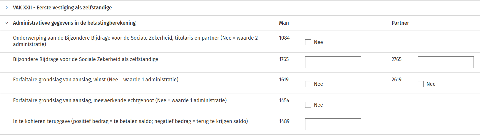 Per juridische constructie kunnen de in de aangifte opgenomen of niet opgenomen inkomsten ingevuld worden. Het is vereist om per juridische constructie minimaal één code met bedrag in te vullen.