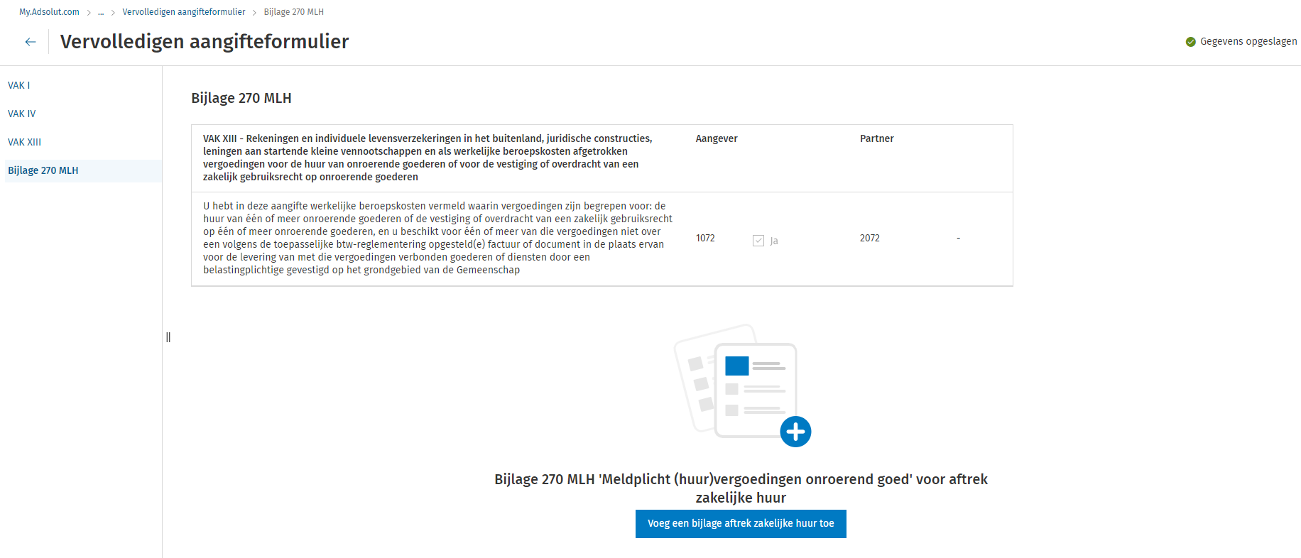 Bij definitief indienen, wordt de bijlage 270 MLH mee doorgestuurd. U kunt deze bijlage niet meer raadplegen.