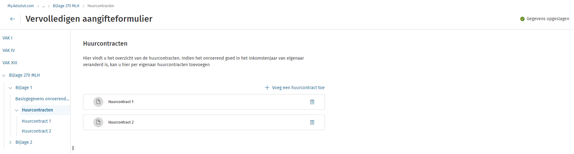 Per bijlage zijn één of meerdere huurcontracten mogelijk.