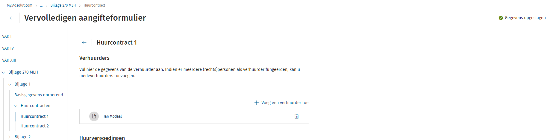 Per huurcontract kunnen er meerdere verhuurders ingevuld worden.