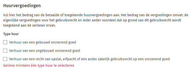 Het aantal huurcontracten en de daaronder te vermelden verhuurders zijn beperkt tot 3. Het is vereist om per bijlage minimaal één huurcontract met daaronder minimaal één verhuurder in te vullen.