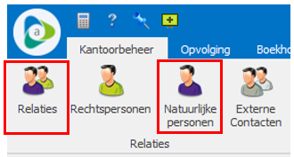 - Klik in de module "Relaties" op de knop "Relaties" of op de knop "Natuurlijke personen".