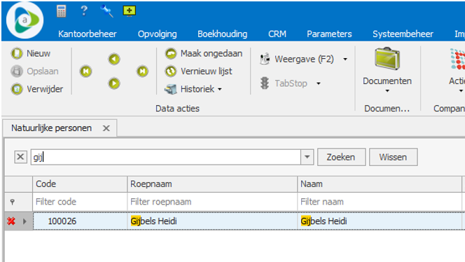 - Zoek de relatie (en indien meerdere zoekresultaten, selecteer de gewenste relatie).