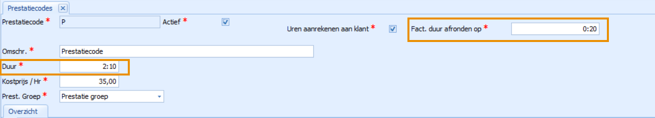 - Fact. duur afronden op: "0:20" "20 minuten".