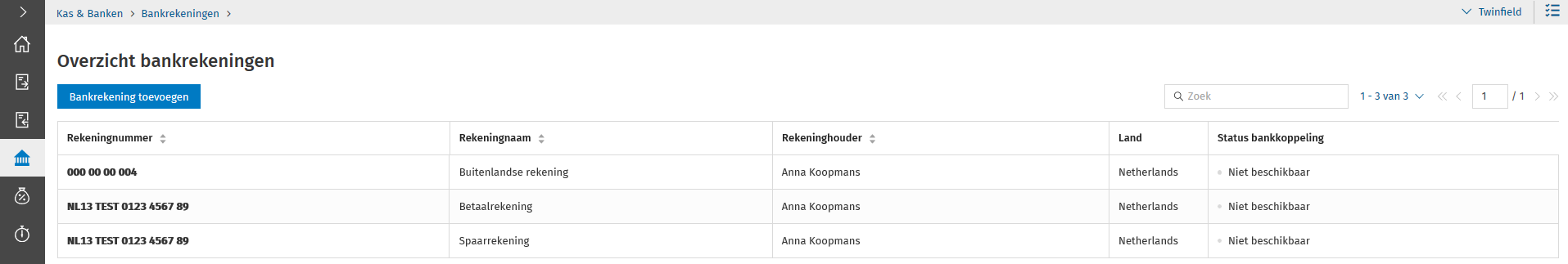 Alle gebruikers met bankrekeningbeheer zien dit handige overzicht met bankrekeningen.