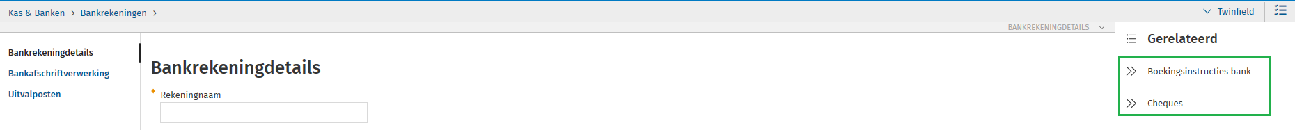 De boekingsinstructies per bankrekening en cheques zijn nu opvraagbaar onder 'Gerelateerd', rechts op de pagina van de bankrekening.