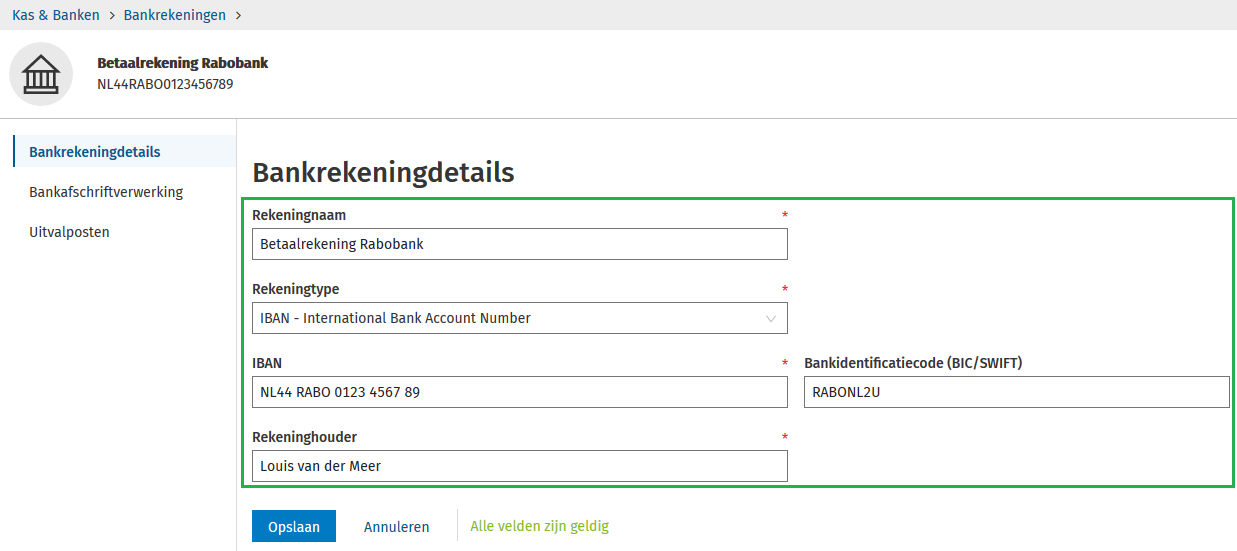 Een voorwaarde voor betalen of incasseren is dat de gegevens van de bankrekening die gebruikt gaat worden voor de betalingen en/of incasso's vastgelegd zijn in de administratie. Dit mogen ook meerdere bankrekeningen zijn.