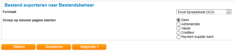 Kies daarna voor het formaat Excel Spreadsheet (XLS) en klik op [Volgende].