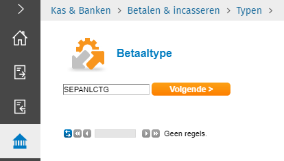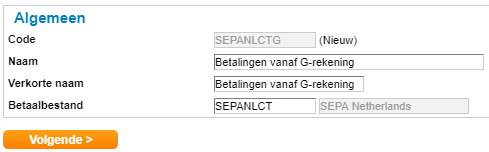Bedenk een code voor het nieuwe betaaltype (bijvoorbeeld SEPANLCTG) en kies [Volgende].