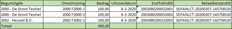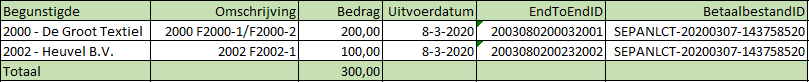 Dit is hoe het betaalbestand eruit ziet als je het betaaltype hebt ingesteld op Groeperen: