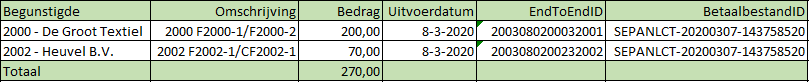- End-to-end-ID: Het end-to-end-ID wordt uitgelegd in dit artikel: Betalen & incasseren - Het boeken van een betaal- of incassoronde
