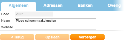 Zijn er nog geen mutaties verbonden aan de debiteur of crediteur, dan is de button [Verwijderen] aanklikbaar en is de relatie dus op te schonen. Zijn er al wel boekingen voor de relatie vastgelegd, dan is het enkel mogelijk om de relatie te verbergen.