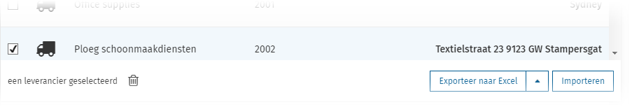 Daarnaast is het een optie om relaties direct vanuit de lijsten 'Leveranciers' en 'Klanten' te verwijderen. Markeer één of meer relaties door het vinkje te plaatsen voor de relatienaam. Onder in beeld is zichtbaar hoeveel relaties zijn aangevinkt. Klik vervolgens op het prullenbak-icoontje om deze te verwijderen.