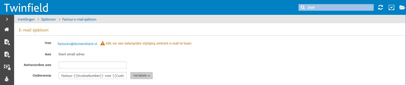 Dit is het e-mailadres dat de ontvanger van de factuur zal zien. Het is mogelijk dit afzender e-mailadres aan te passen.