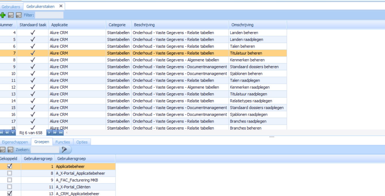 Gebruikerstaken zorgen er voor wat een gebruiker wel of niet mag zien in Alure.